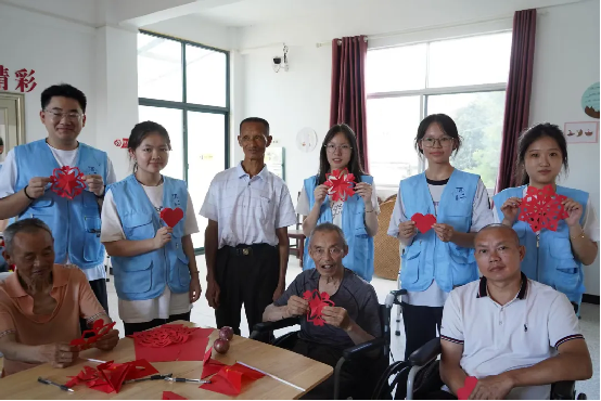 随后,队员们来到在在大陇养老服务中心,队员们开展了关爱老党员、服务老年群体人的暖心志愿服务活动队员们化身温暖的陪伴者。围坐通过话家常、时,欢声笑语拉近了代际距离;齐声唱红歌、时,激昂旋律抒发了对党的深情;共剪红纸间等互动,与老人们共叙家国情怀。精巧图案传递了对党的祝福。队员们小心翼翼地搀扶着老人,在精心布特别设置的天安门主题摄影环节,幕布前定格幸福瞬间,用镜头记录镌刻下老人们对党和国家的赤诚情怀,代际间的温情互动让红色精神薪火相传。