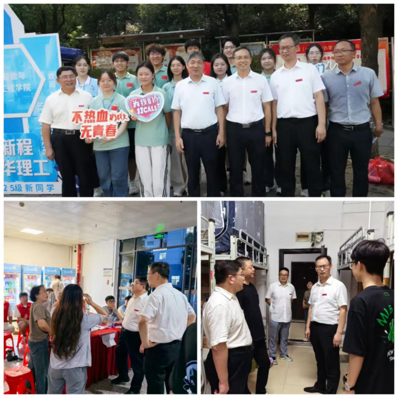 为保障迎新工作高效有序推进,学院提前谋划,周密部署,召开专项协调会,统筹各部门协同联动。迎新现场,身着统一服装的志愿者团队提供行李搬运、路线指引、答疑解惑等“一站式”服务,用热情与专业为新生搭建起温暖的入学桥梁。院党委书记王平风、院长何剑锋一行实地走访迎新现场,了解新生的报到情况,慰问参与迎新工作的师生并与新生合影留念。期间,学院领导及2025级新生辅导员走访了新生宿舍,检查宿舍各项设施及用电安全情况。院领导与同学们亲切交流,了解新生情况,勉励同学们珍惜时光、勇于探索,努力书写属于自己的青春篇章。